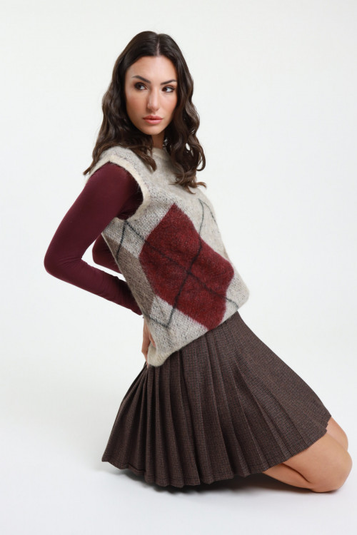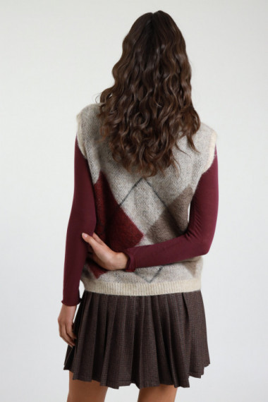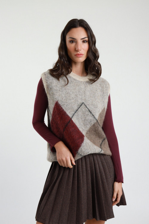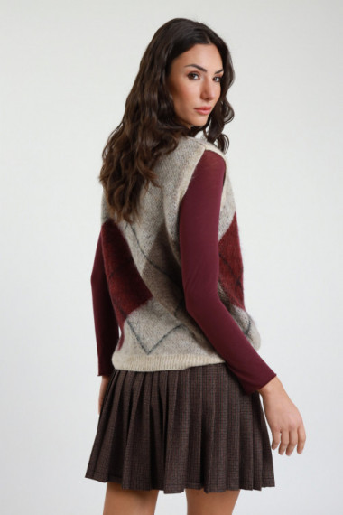 Gilet Girocollo in Maglia con Dettaglio Tessuto Micro Paillettes.