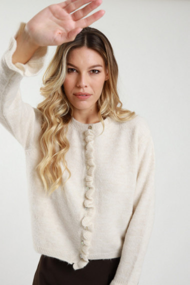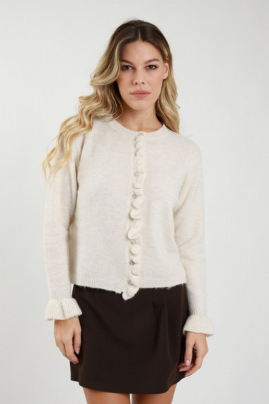 Cardigan Girocollo con Rouges sui Bottoni e sulle Maniche.