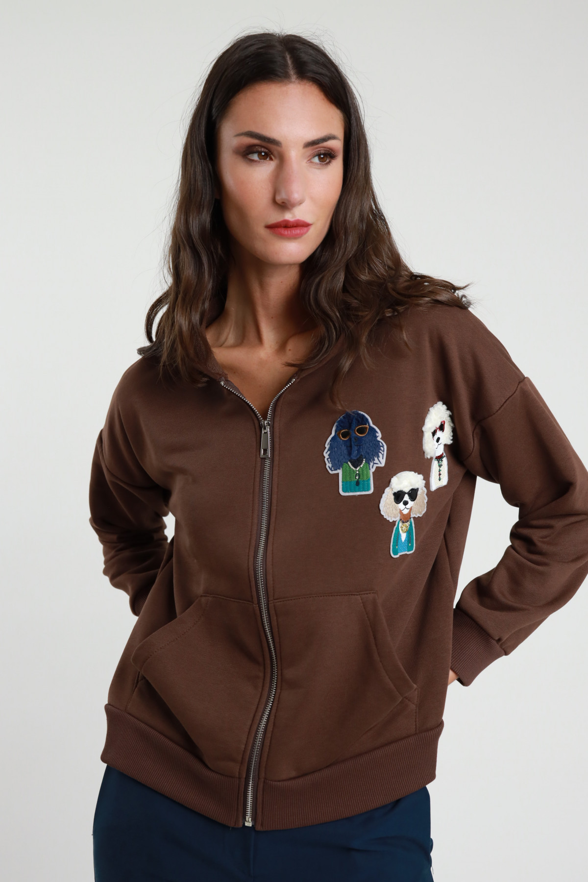 Felpa con Patch Cani, Cappuccio, Chiusura a Zip e Due Tasche Frontali.