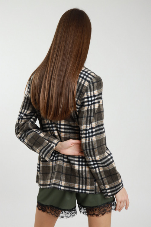 Giacca Check con Rever Classico con Spilla Applicata. Tasche Frontali a Filetto con Pattina.