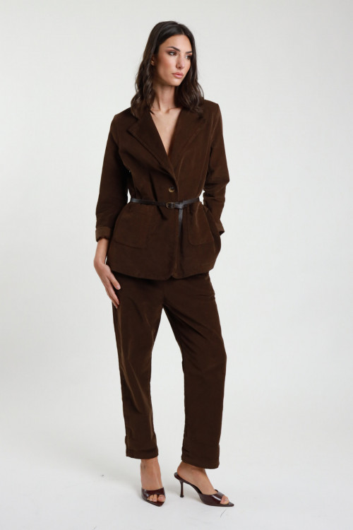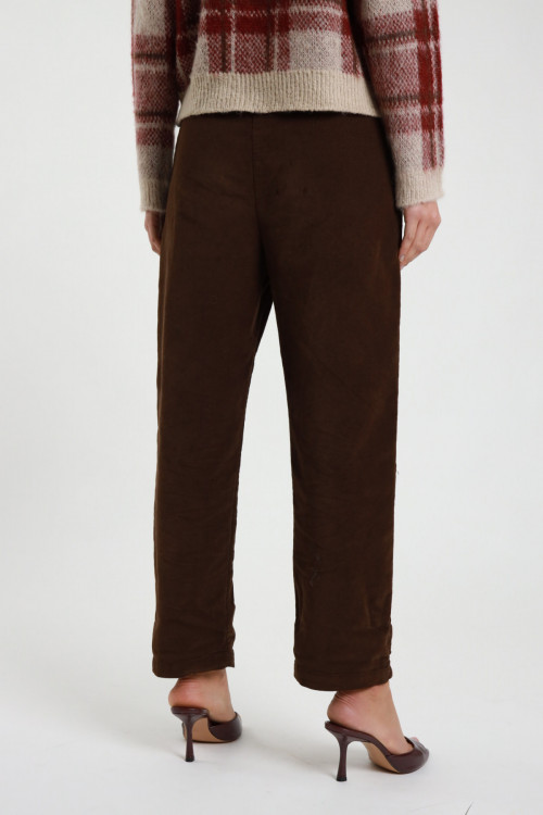 Pantaloni in Velluto Taglio Dritto con Elastico in Vita e Fiocco.
