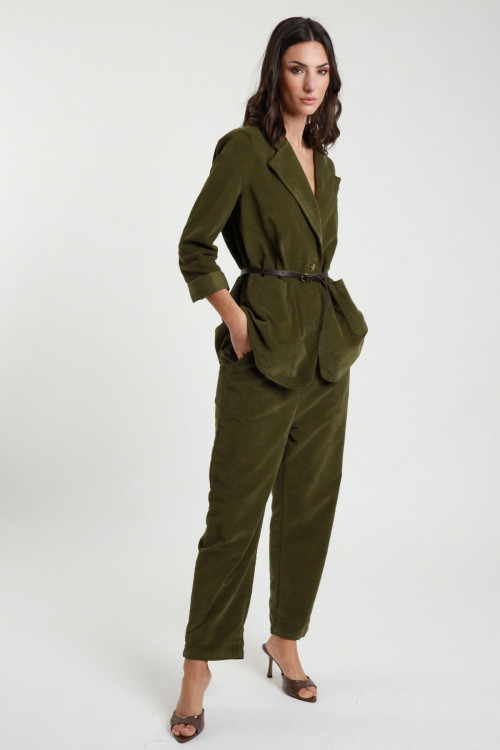Pantaloni in Velluto Taglio Dritto con Elastico in Vita e Fiocco.