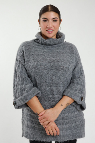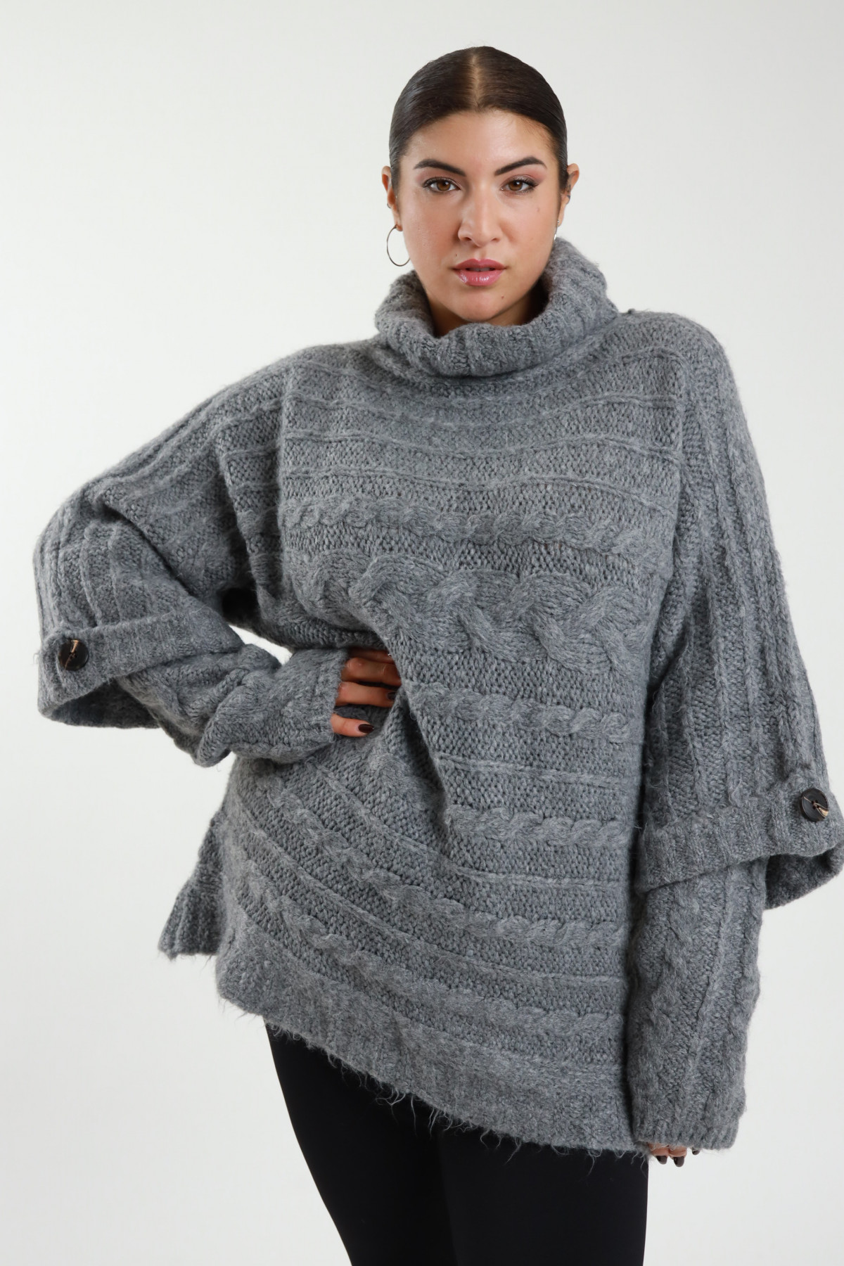 Maglione Trecce, Collo Alto, Maniche 3/4 Ampie con Manicotti - Linea Curvy Susy Star.