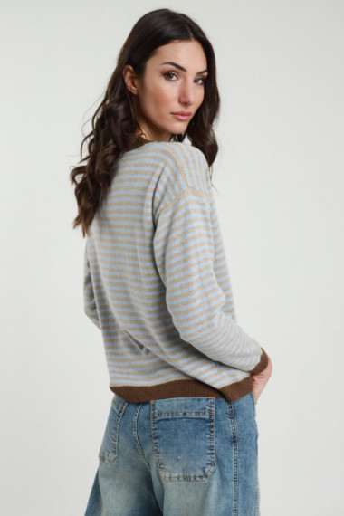 Maglione Girocollo con Sciarpa a Righe Rimovibile.