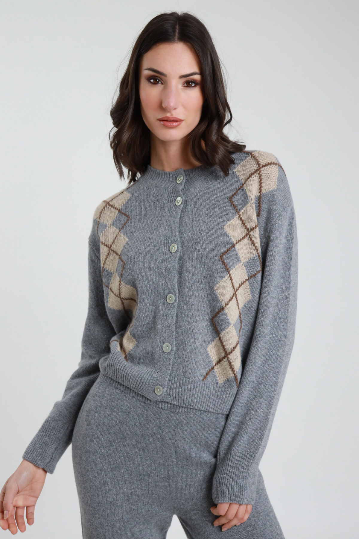 Cardigan con Disegnp Rombi sul Fronte, Orli a Costine.