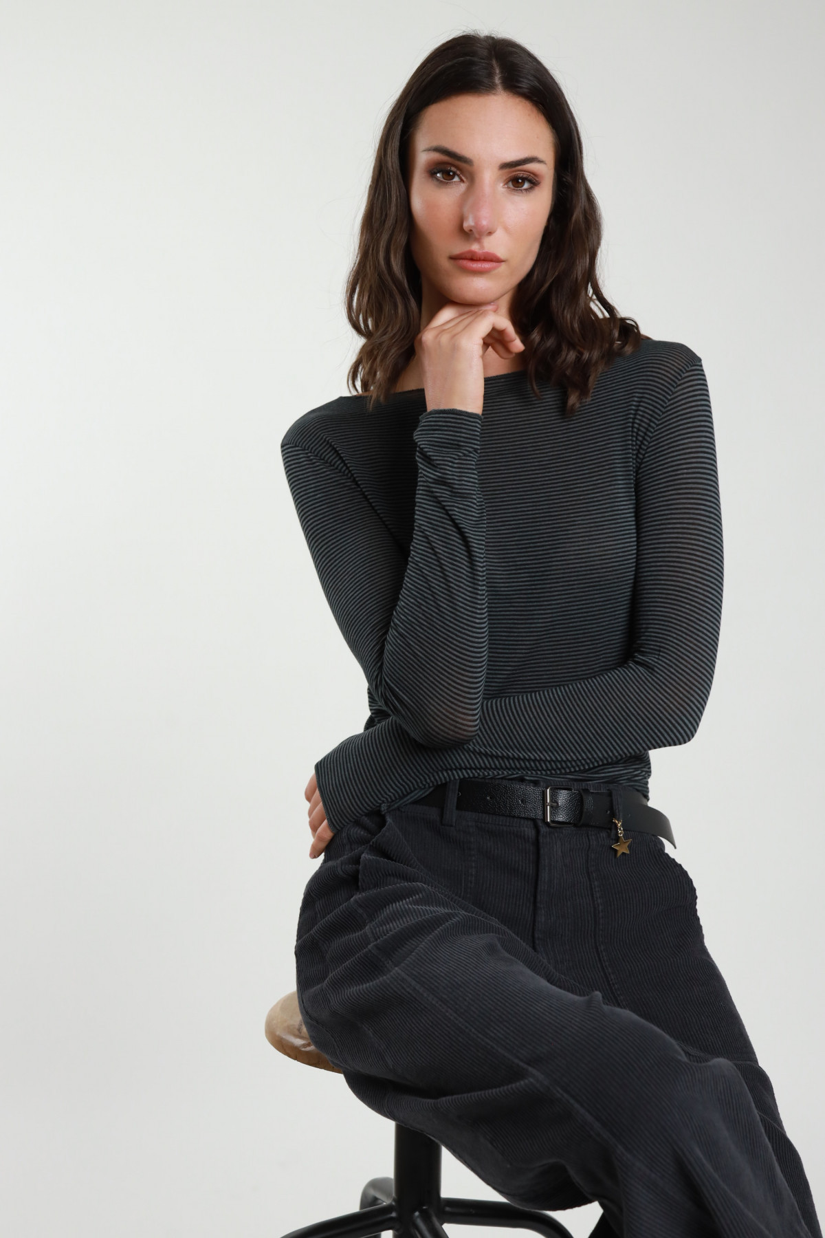 T-Shirt Maniche Lunghe Animalier con Scollo a Barchetta.