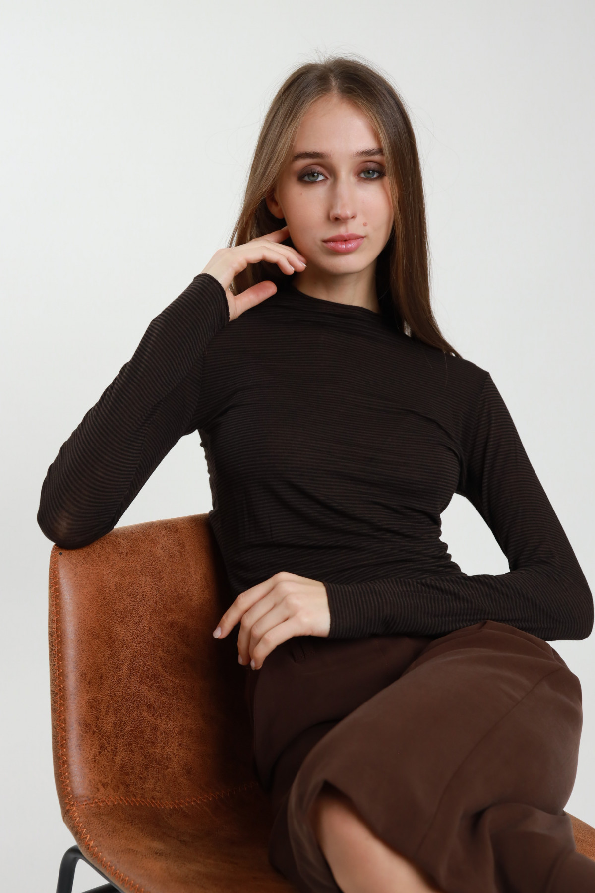 Maglia Lupetto Maniche Lunghe Rigata con Cashmere.