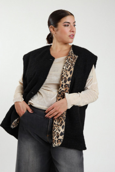 Smanicato in Lana Cotta con Tasche Frontali e Interno Animalier Fantasia Maculata - Linea Curvy Susy Star.