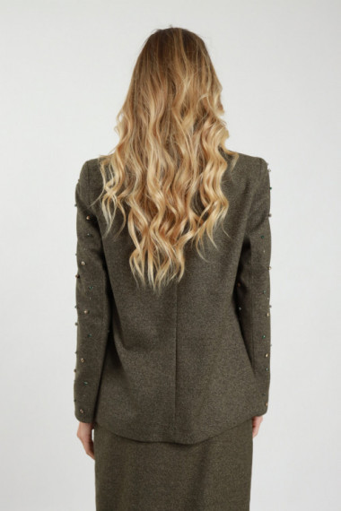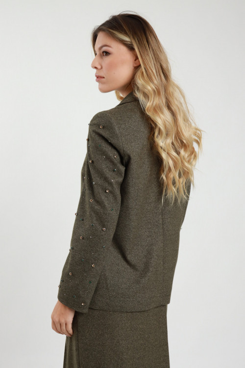 Giacca Mono Bottone con Strass Applicati sulle Maniche.