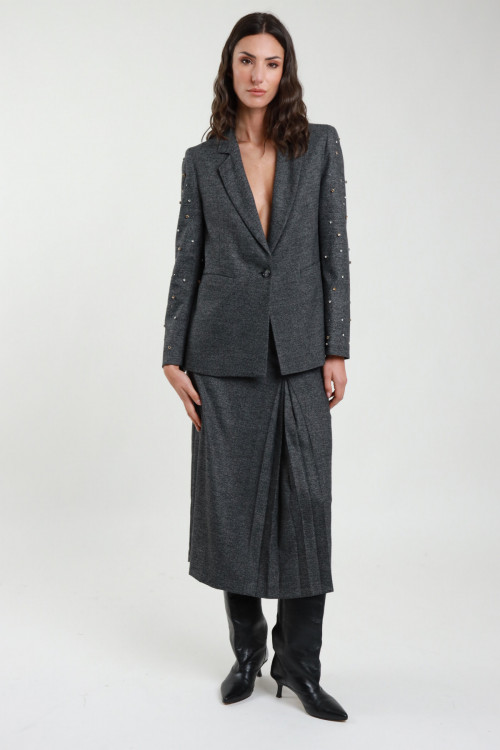 Giacca Mono Bottone con Strass Applicati sulle Maniche.