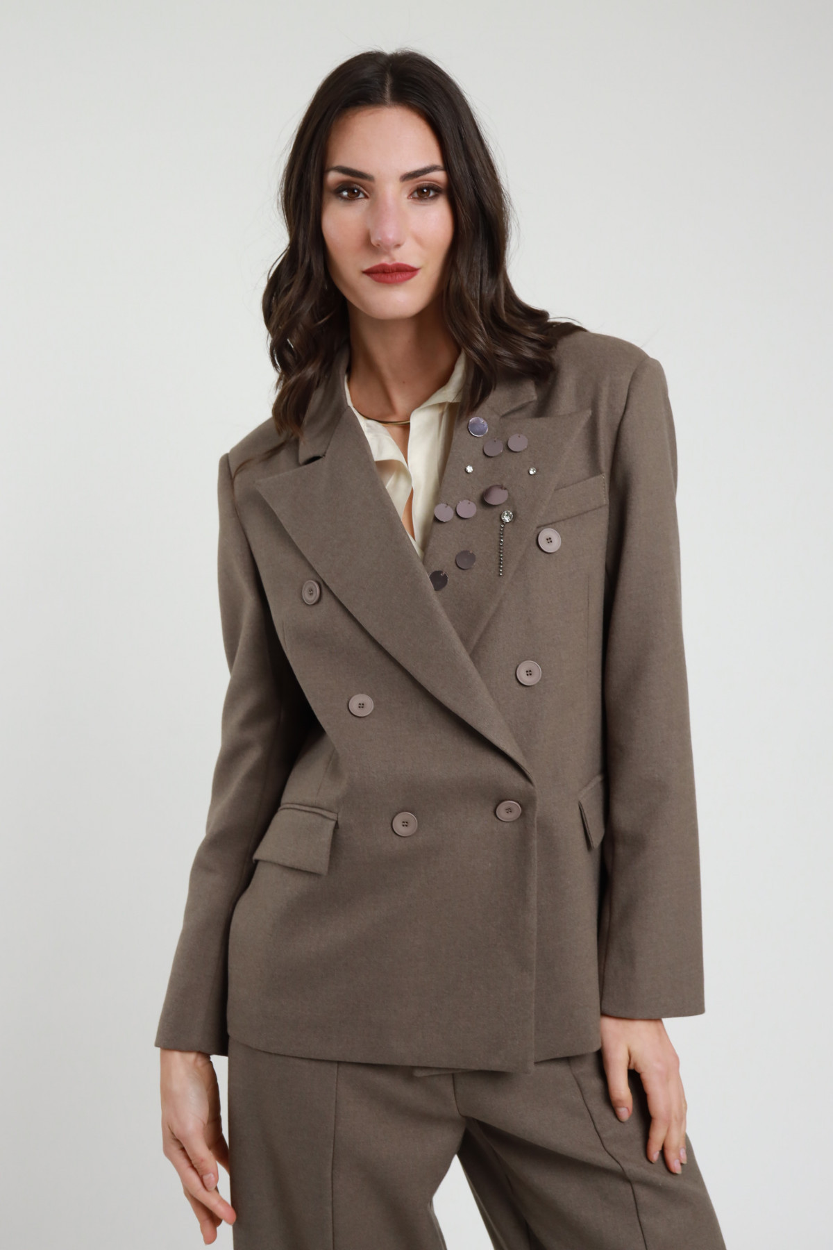 Giacca Over Doppiopetto con Dettagli Applicazioni Stass e Paillettes sul Rever.