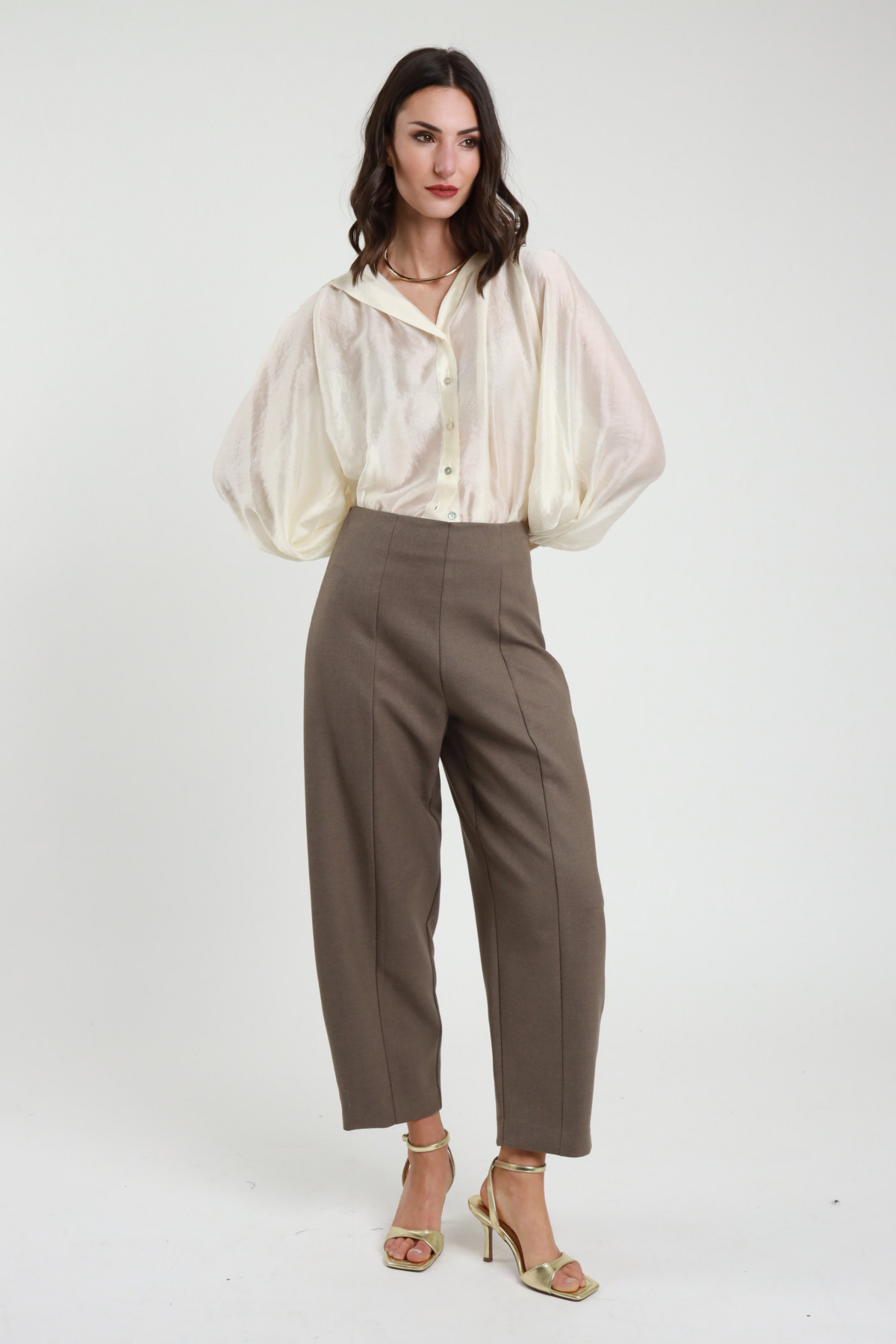 Pantaloni Modello Ovetto con Chiusura Zip e Bottone.