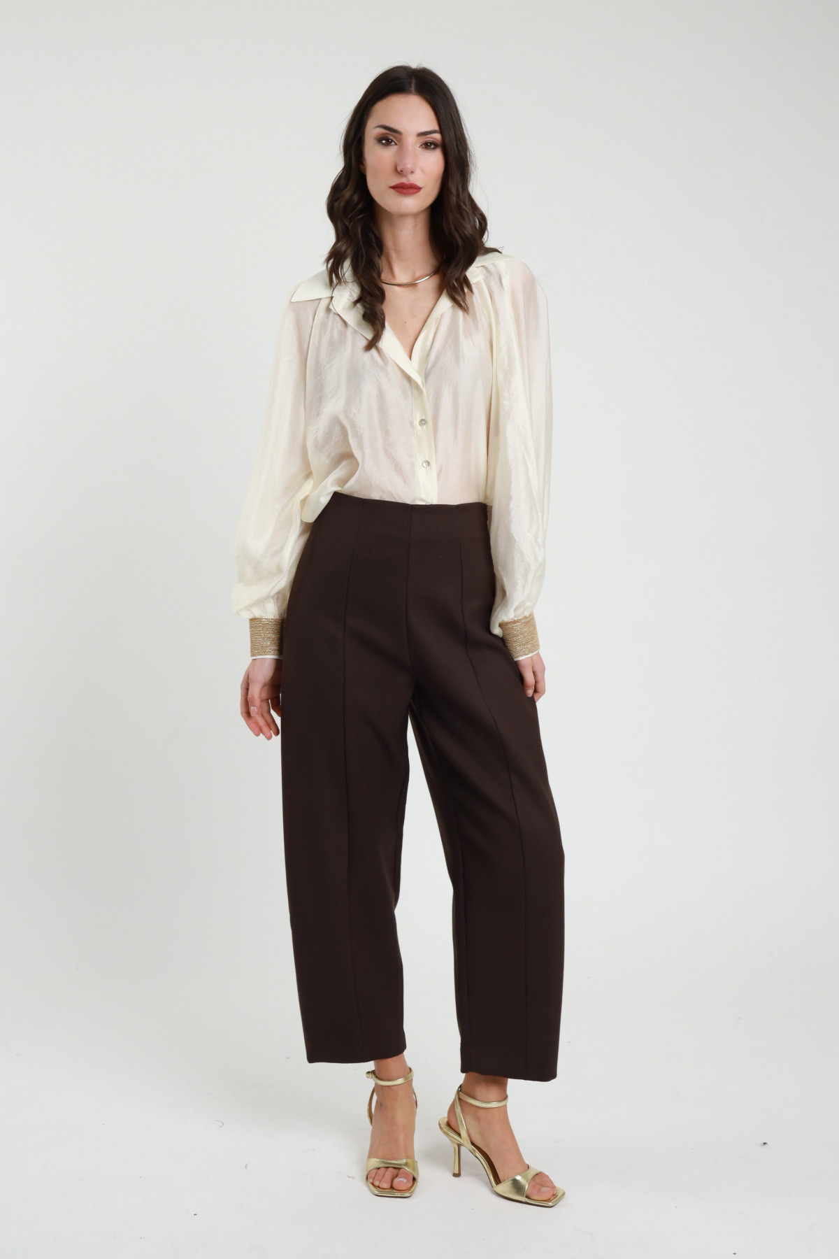 Pantaloni Modello Ovetto con Chiusura Zip e Bottone.