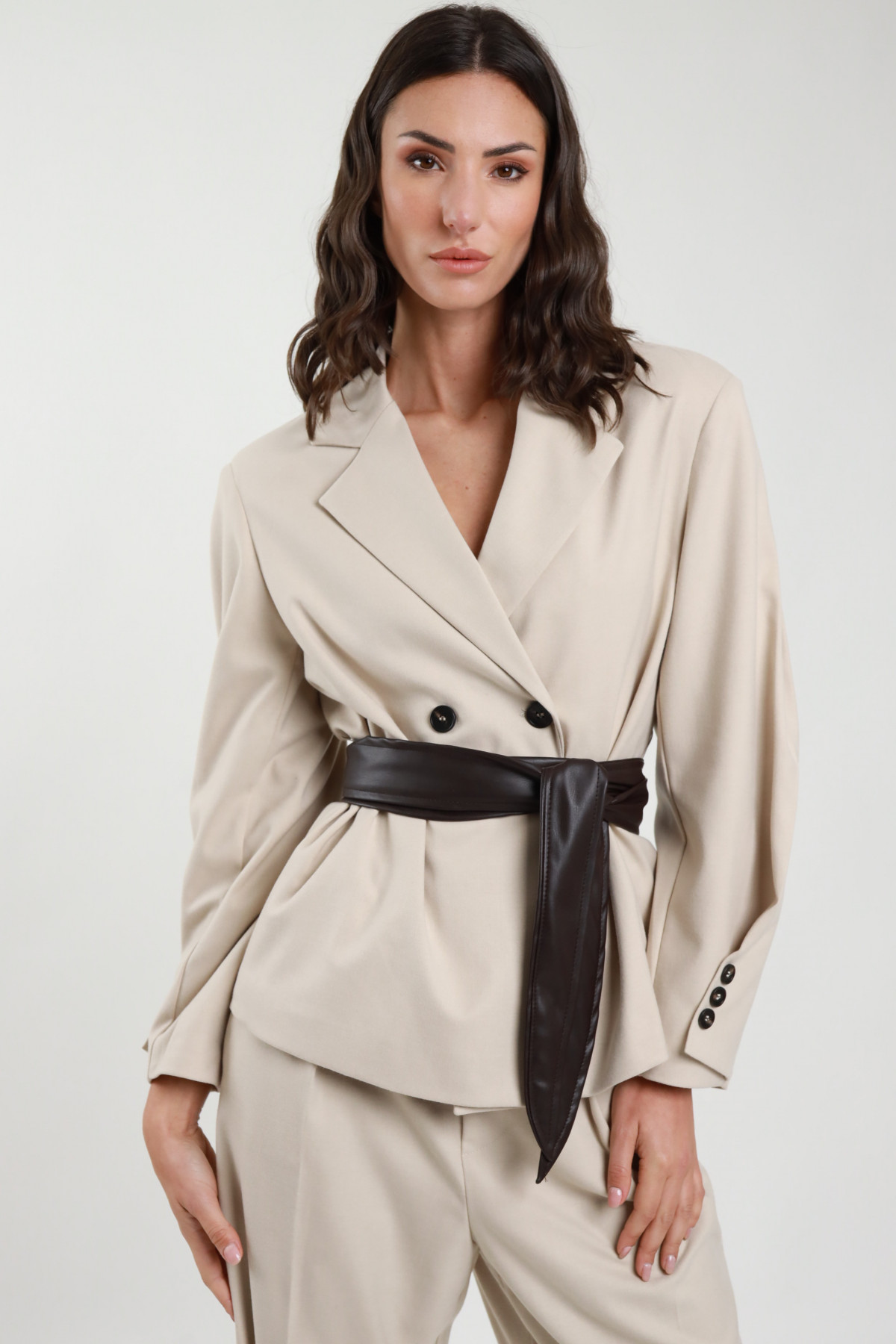 Blazer Doppio Petto Con Maniche a Palloncino e 3 Bottoni sul Fondo. Fusciacca in Ecopelle in Vita Rimovibile.