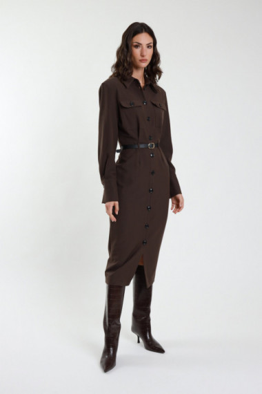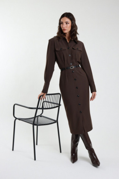 Abito Chemisier Midi con Cintura e Due Tasche Frontali.