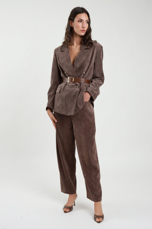 Pantaloni In Velluto Taglio Ovetto con Tasche Laterali e sul Retro, Cintura in Vita.