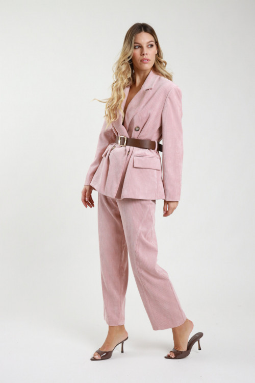 Pantaloni In Velluto Taglio Ovetto con Tasche Laterali e sul Retro, Cintura in Vita.