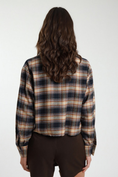 Camicia a Scatola in Fantasia Check con Dettaglio Applicazioni Borchie e Strass.