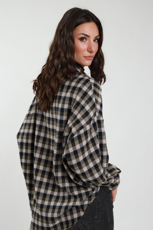 Classic over shirt with written applications in rhinestones on the back. 55%Rpet 45%CO