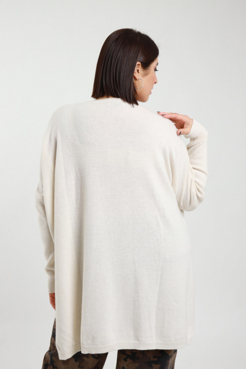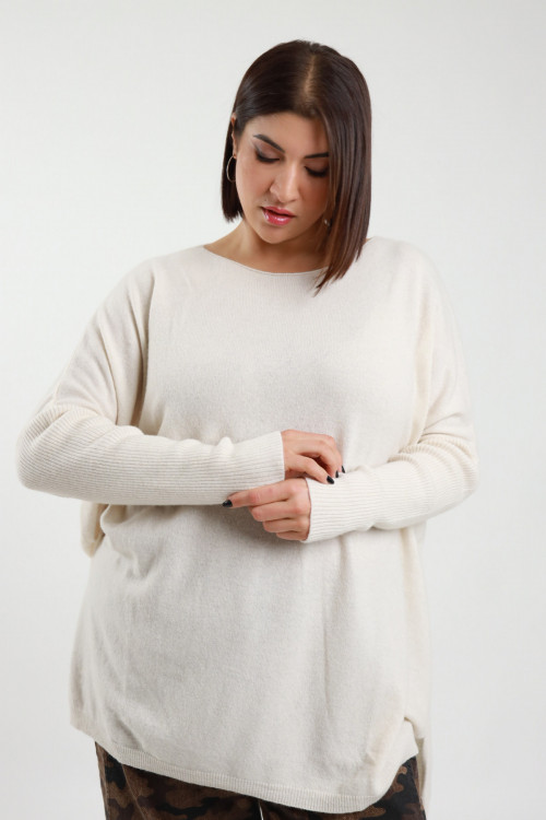 Maglia Scollo Barca Over Asimmetrica, Maniche a Costine - Linea Curvy Susy Star.