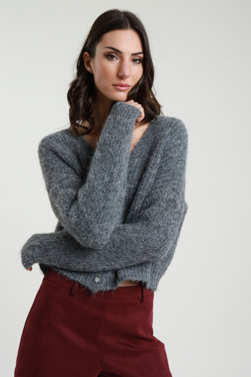 Cardigan Crop Costa Inglese, Chiusura Bottoni Gioiello.
