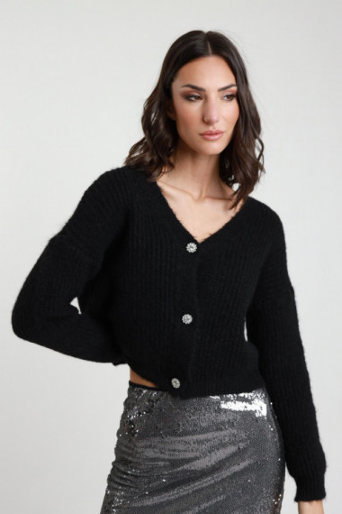 Cardigan Crop Chiusura 2 Bottoni con Micro Paillettes.