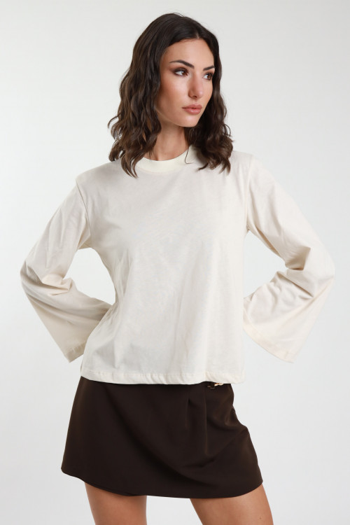 T-Shirt Girocollo, Maniche Lunghe ed Ampie.