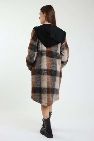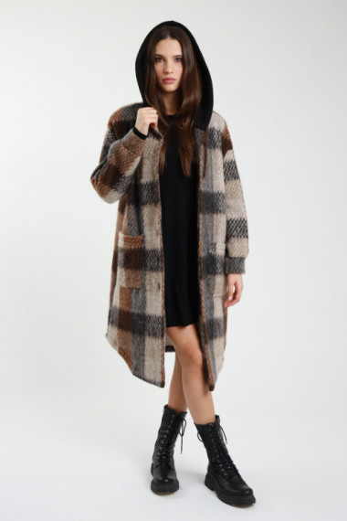 Cappotto Lungo con Tasche Frontali e Cappuccio in Felpa.