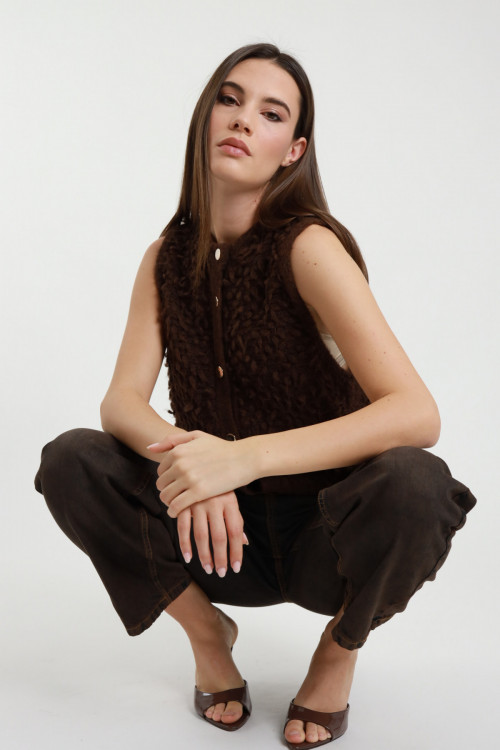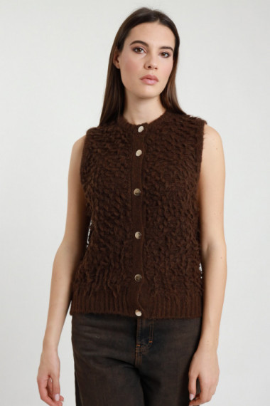 Gilet in Maglia con Bottoni e Tasche Frontali Finte.