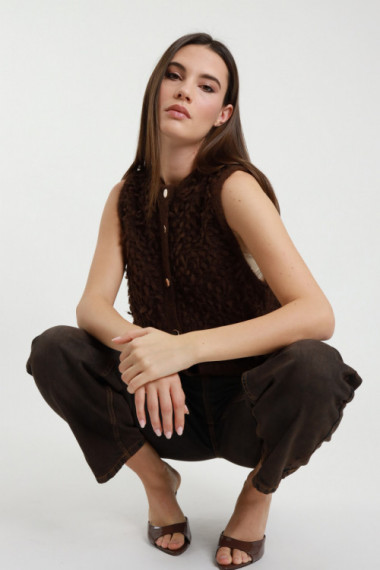 Gilet Over Chiusura con Bottoni. Frange sul Fondo e Retro in Crochet.
