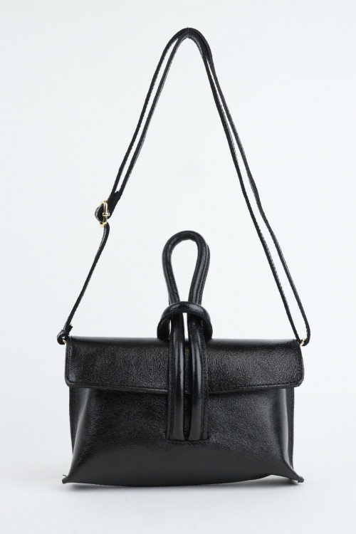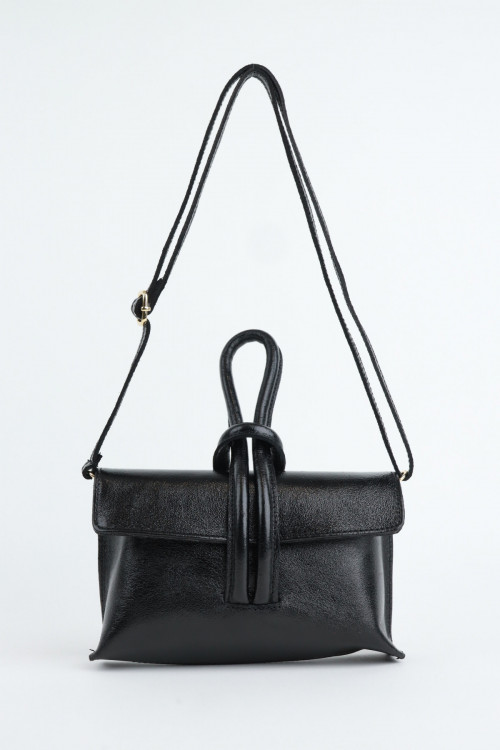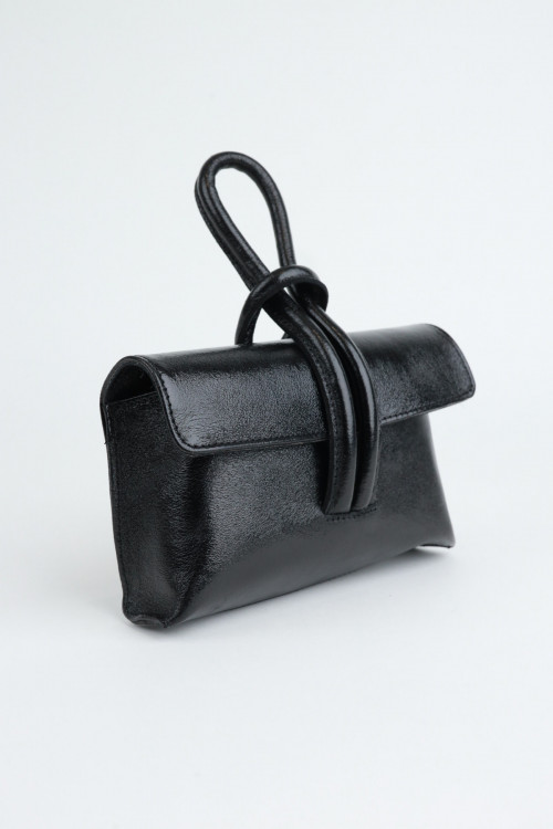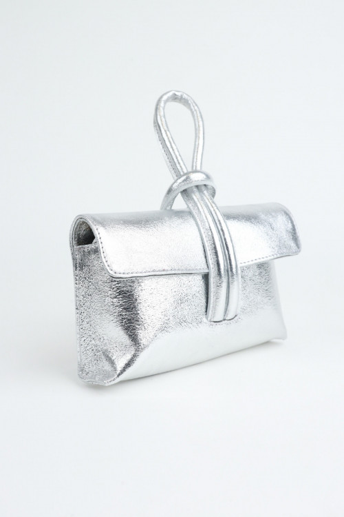 Pochette in Ecopelle con Chiusura Nodo, Tracolla Rimovibile.