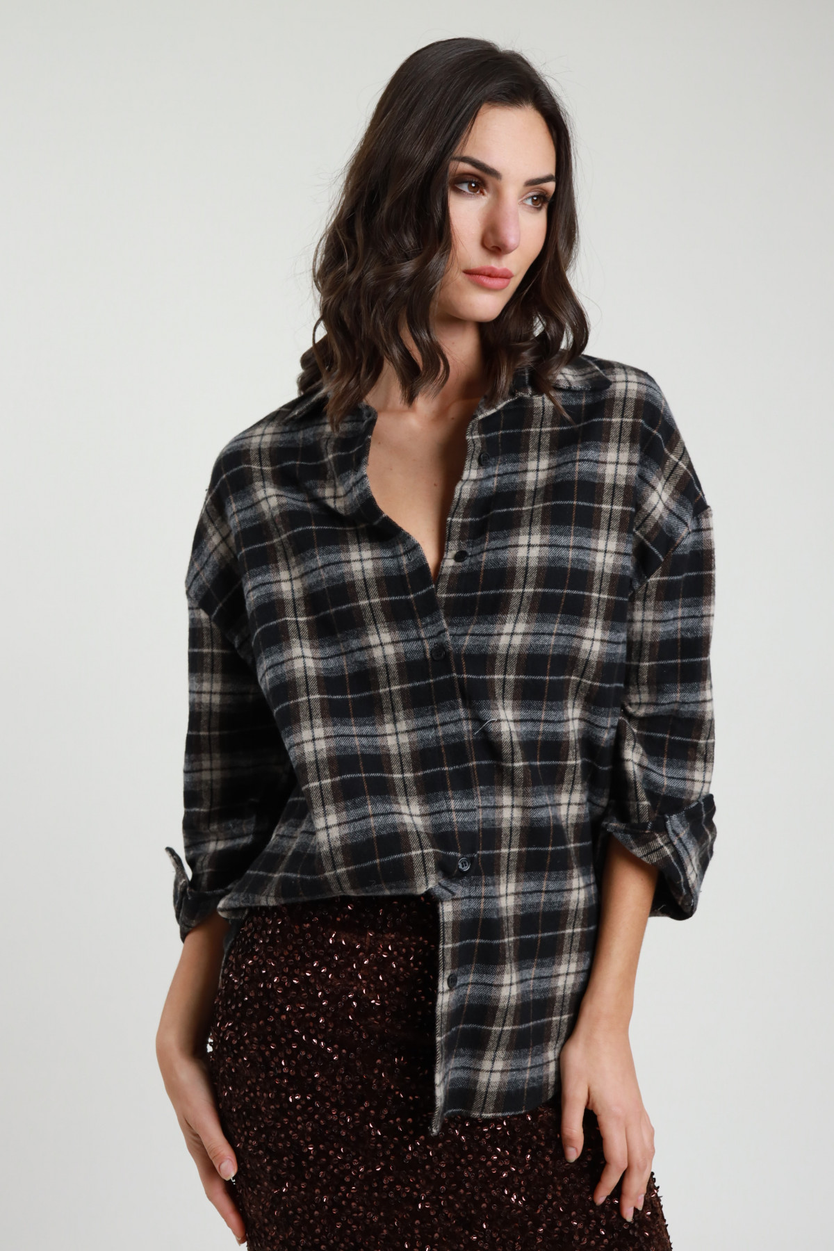 Classic cut shirt, abstract floral imagination, with transparency effect. 100%PL