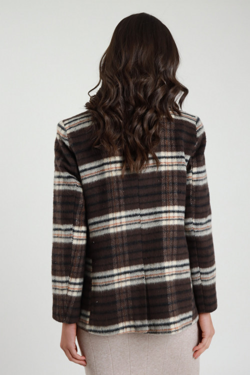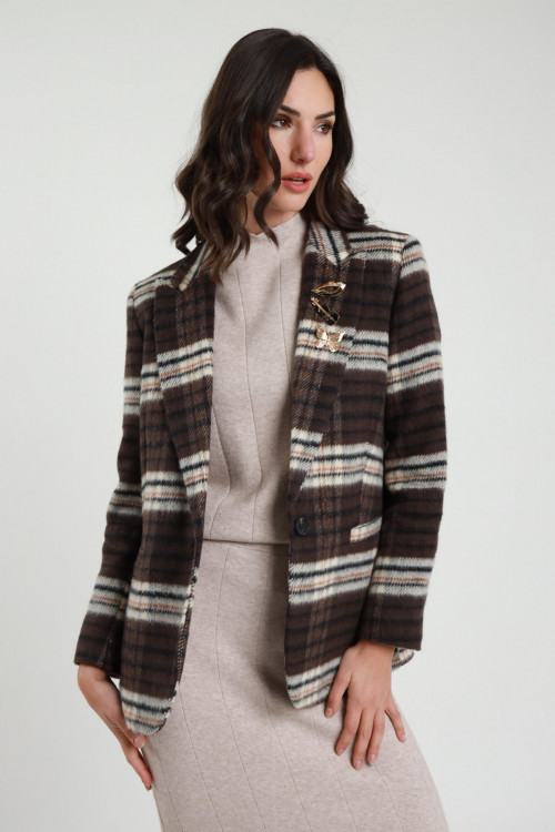 Blazer Monopetto Fantasia Check con Spille sul Rever, Tasche Filetto.