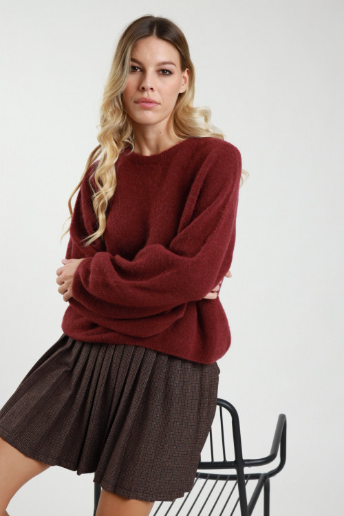 Maglione Girocollo con Maniche a Palloncino, Bordi a Costine.
