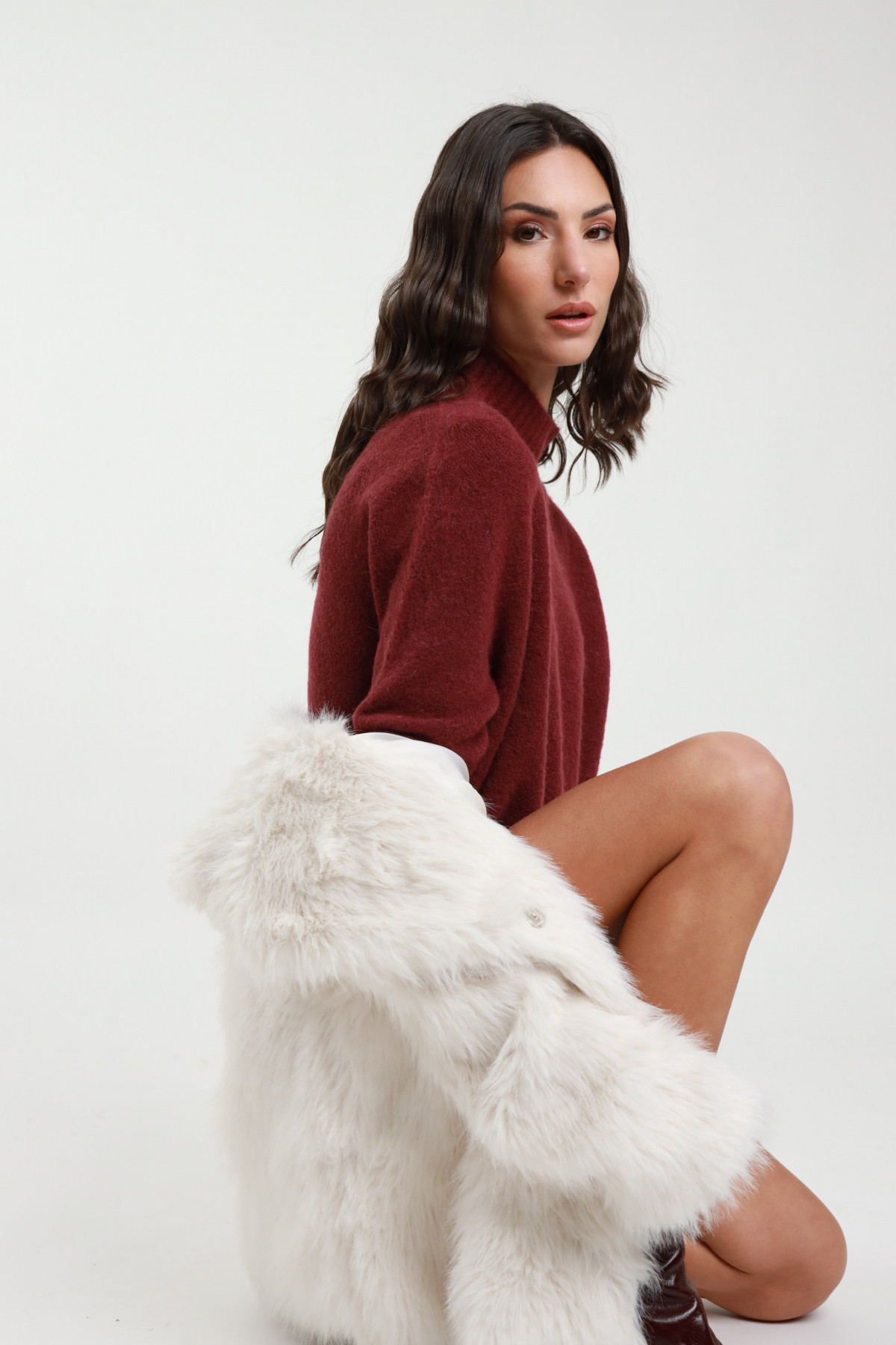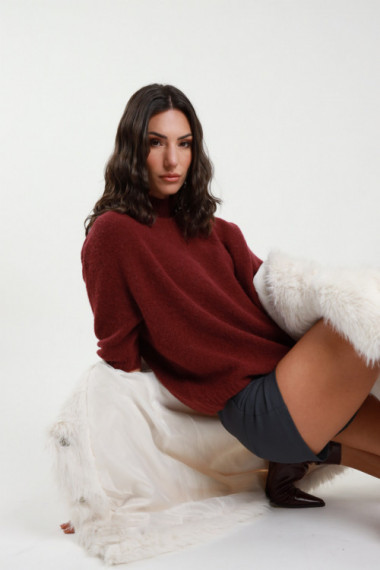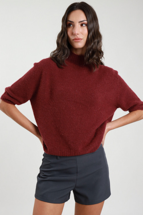 Lupetto Over, Maniche 3/4 a Palloncino con Bordi a Costine.