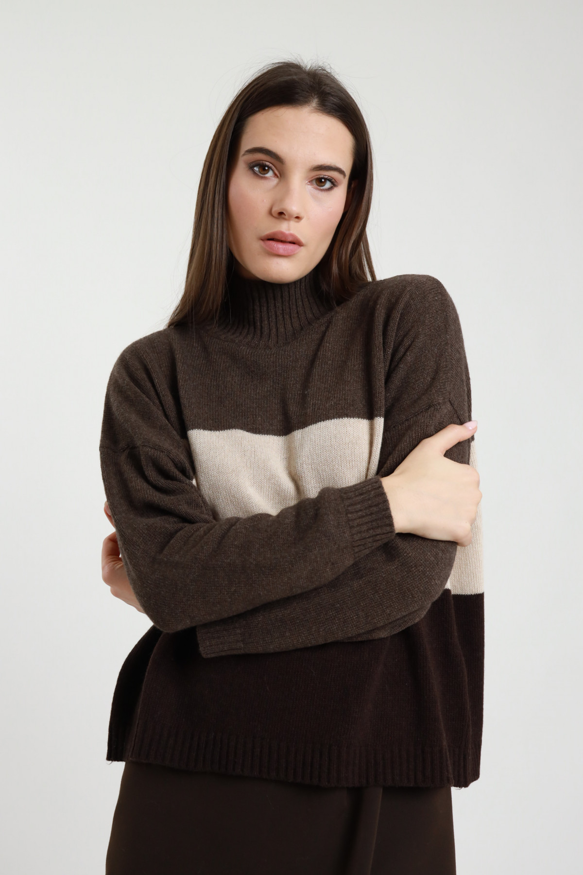 Lupetto Over cn Righe Bicolor. Orli a Costine.