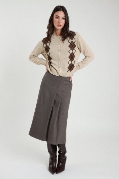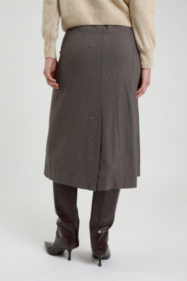 Gonna Midi Tinto Capo con Pieghe sul Fronte e Spacco sul Retro. Chiusura Zip.