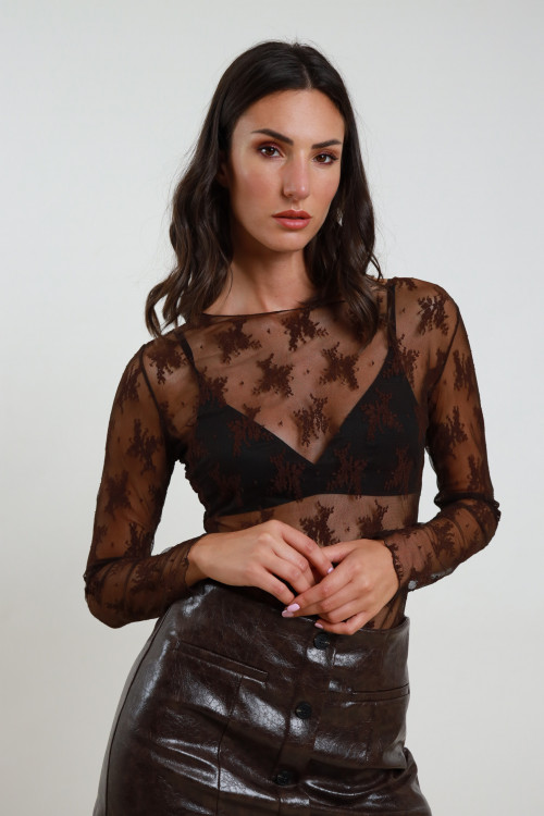 Maglia Maniche Lunghe in Pizzo con Scollo a Barchetta.