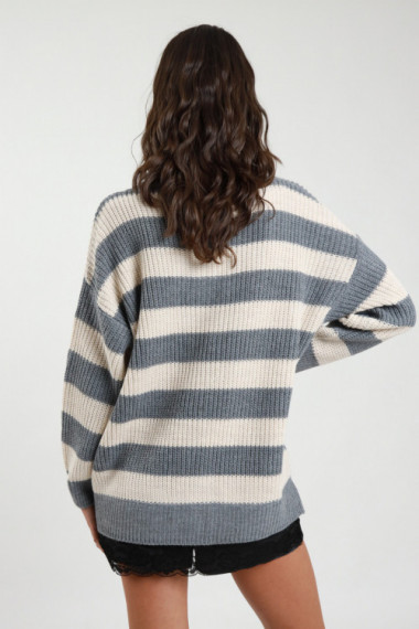 Maxi Pull a Righe con Pizzo sul Fondo e Scollo a V.