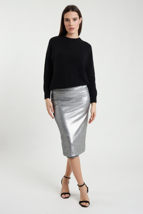Longuette con Spacco e Inserto in Plissè sul Fronte.