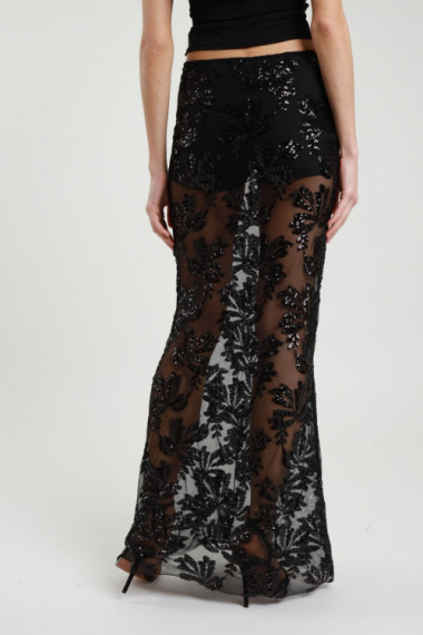 Gonna Sirena Semitrasparente in Paillettes con Culotte Inclusa, Elastico in Vita.