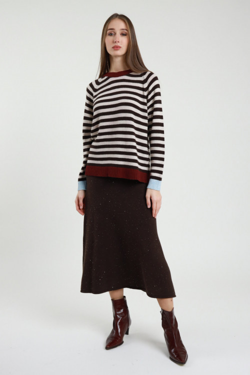 Maglioncino Gircollo con Trecce e Paillettes. Orli a Coste. Slim Fit.