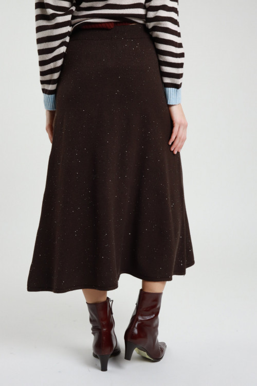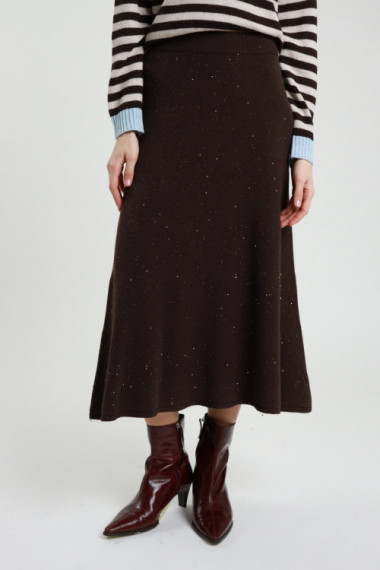 Gonna In Maglia a Ruota con Micro Paillettes, Elastico in Vita.
