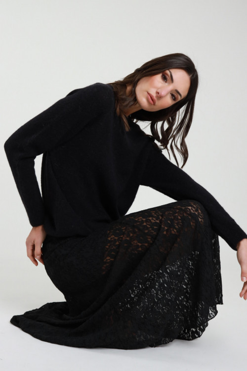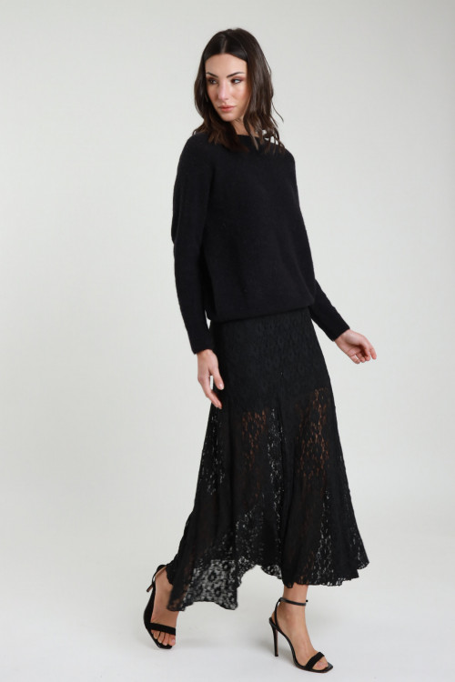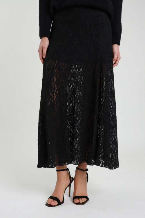 Gonna Lunga in Pizzo con Sottoveste Inclusa, Elastico in Vita.