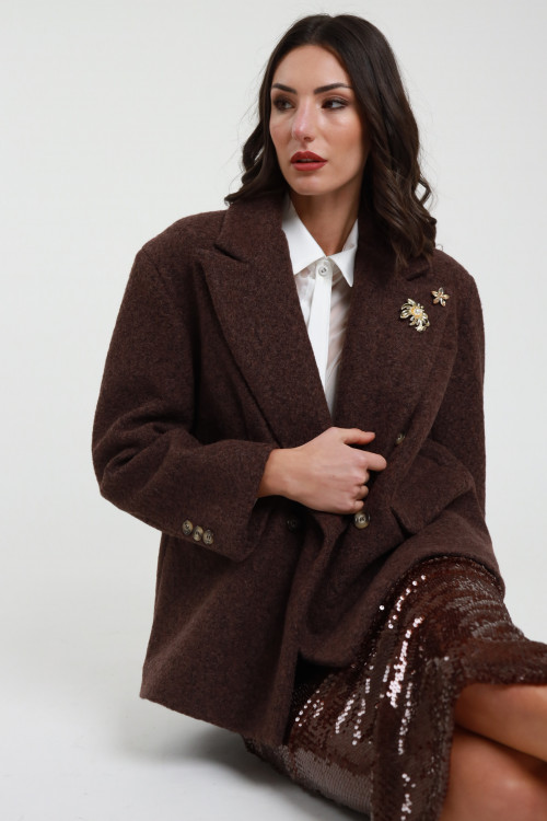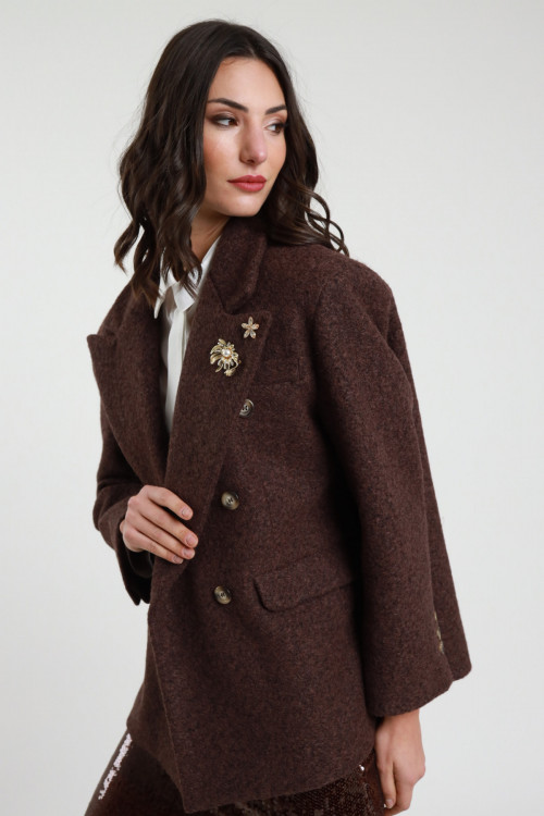 Cappottino Over Doppiopetto con Spille Gioiello Dorate Rimovibili.