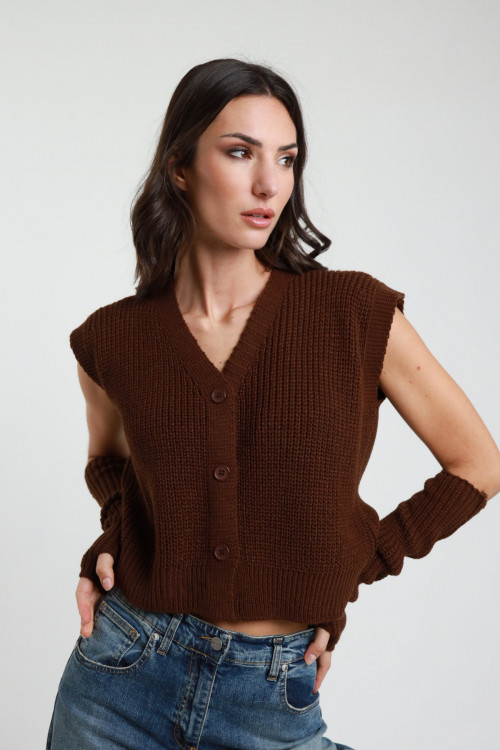 Gilet Crop Chiusura 3 Bottoni con Manicotti. Orli a Costine.
