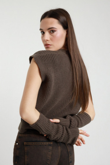 Gilet Crop Chiusura 3 Bottoni con Manicotti. Orli a Costine.