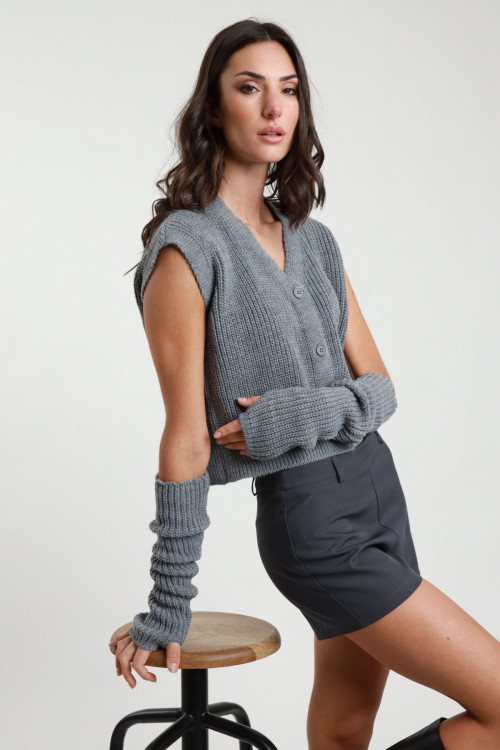 Gilet Crop Chiusura 3 Bottoni con Manicotti. Orli a Costine.