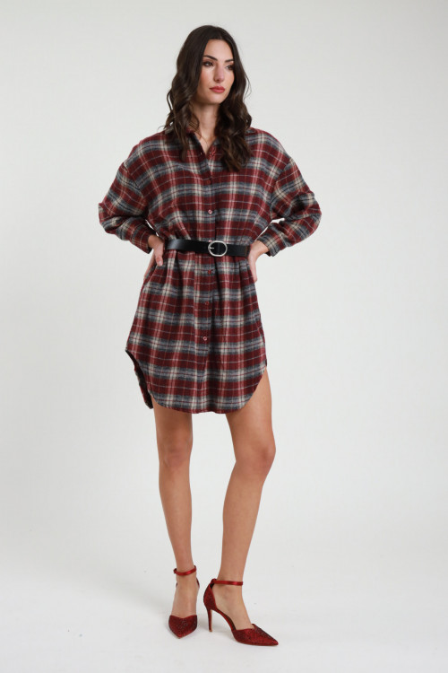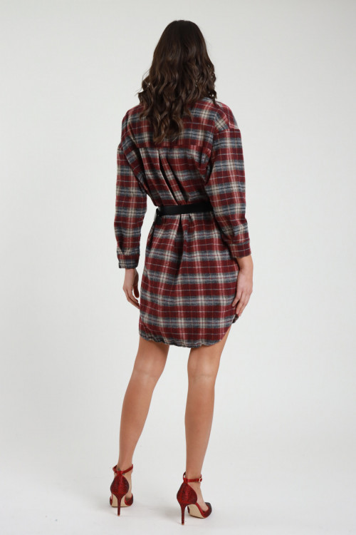Abito Chemisier in Fantasia Quadri con Cintura in Vita.