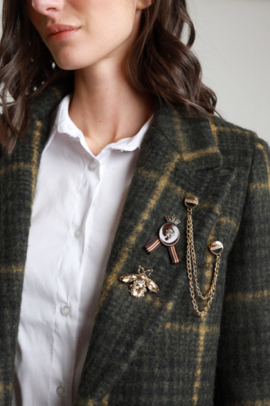 Blazer Over in Fantasia Check, Dettaglio Spille sul Rever Rimovibili, Tasche Filetto con Pattina.